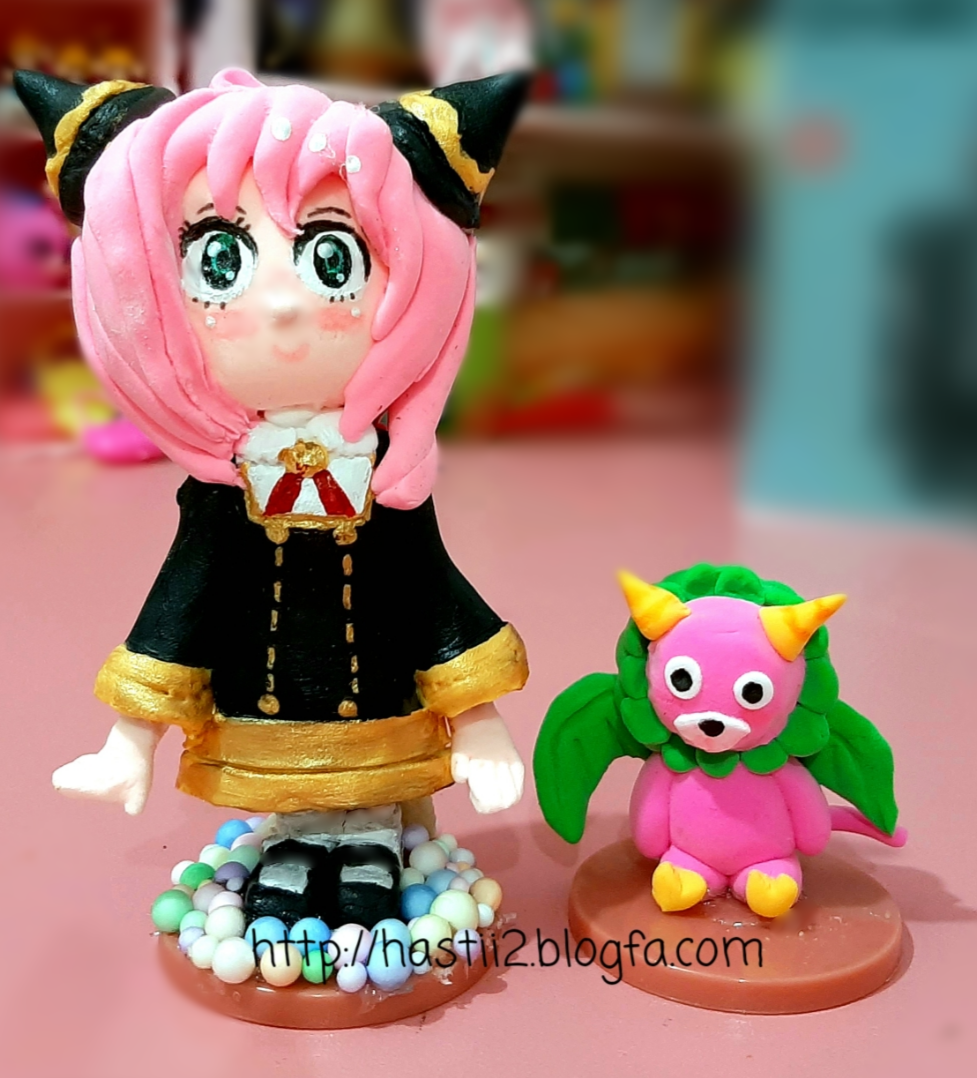 اول با خمیر ساختمش بعد با رنگ اکرولیک یک لایه لعاب زدم روش،دیگه تا دست داداشم نیوفته خراب نمیشه.